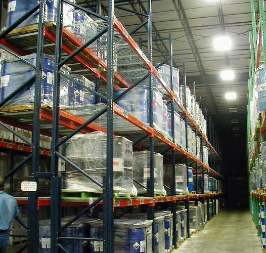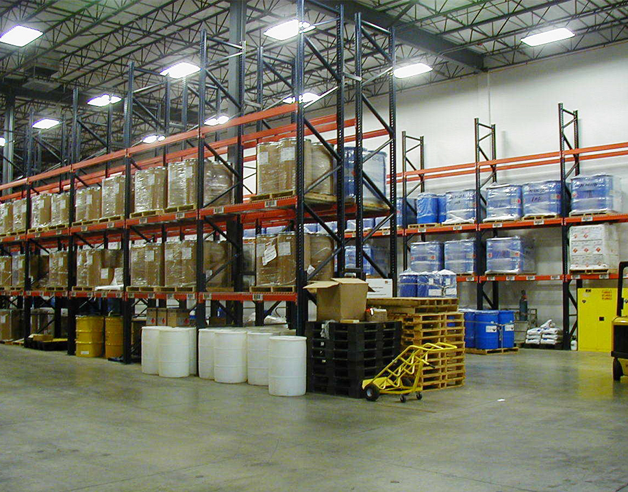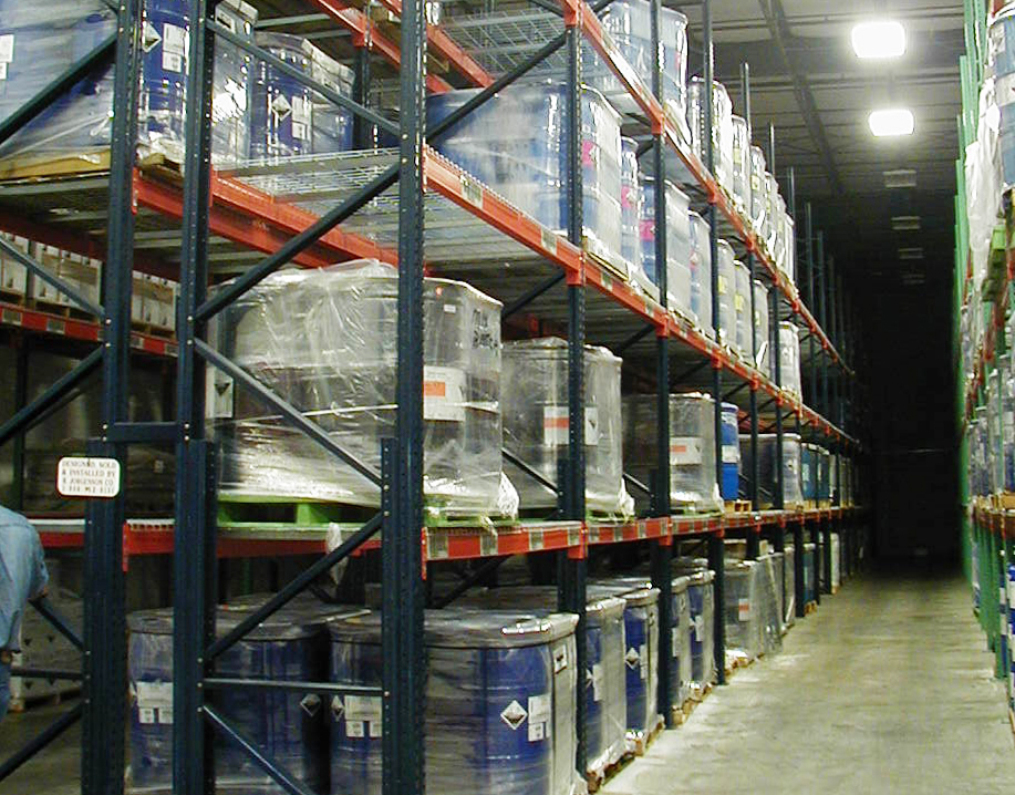 We helped Rinchem design and install a strong and dense pallet rack system that could handle the large boxes, barrels and pallets that would be reguarly stored. The complete racking system consisted of 272 Sections of Pallet Racking which offered a 6,000 lb capacity per level.